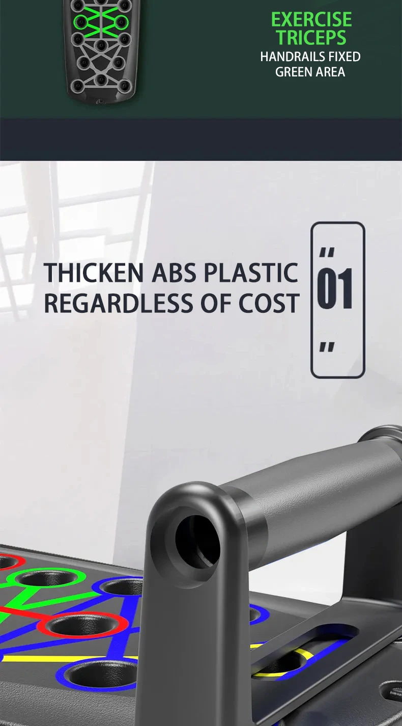 1. Les plaques de poussée de différentes couleurs ciblent les muscles à travailler.